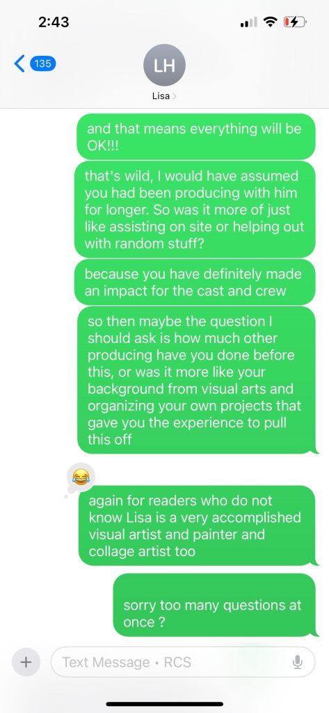 LH: This was officially my first “producer” job and then I briefly helped him on a second project, but that was more like an assistant director role.